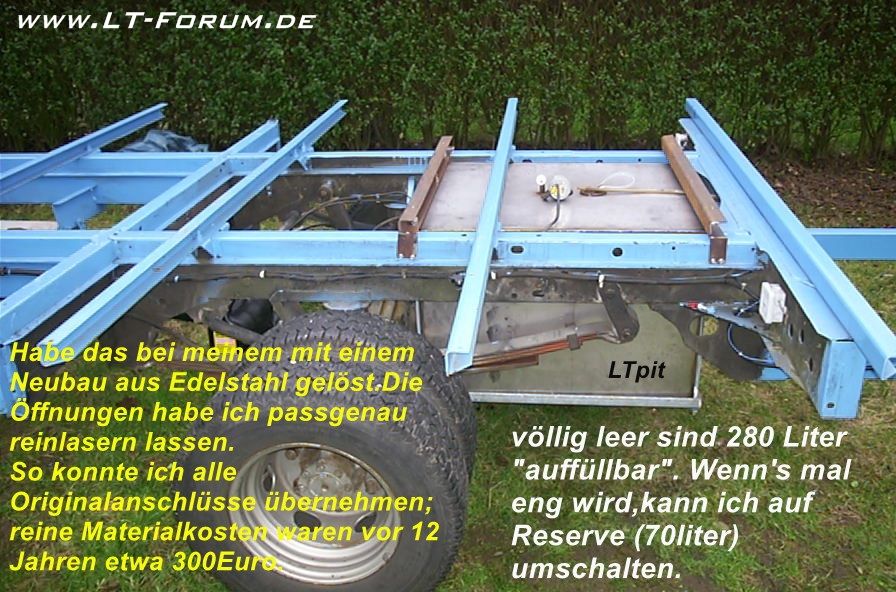 Und hier ist der Ausbau des alten 70 Liter-Tanks im Um-/Einbau des 110 Liter Tanks von der „Frankenbande“ dokumentiert.