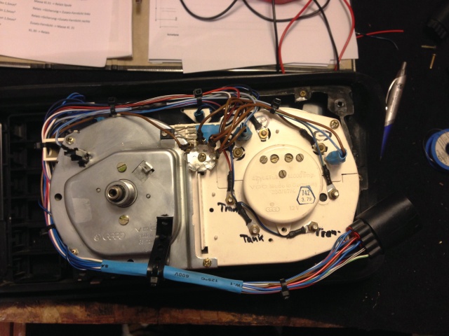 Danach wird alles einzeln verkabelt und einen Mehrfachstecker eingebaut (von einem alten Ford-Kabelbaum).