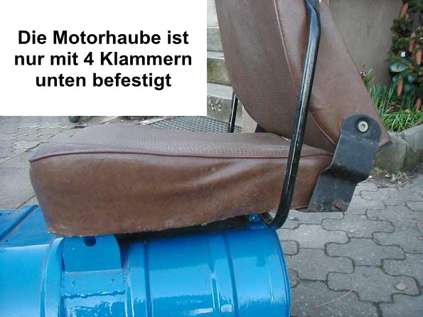 -die Motorhaube nur mit 4 Klammern gesichert und