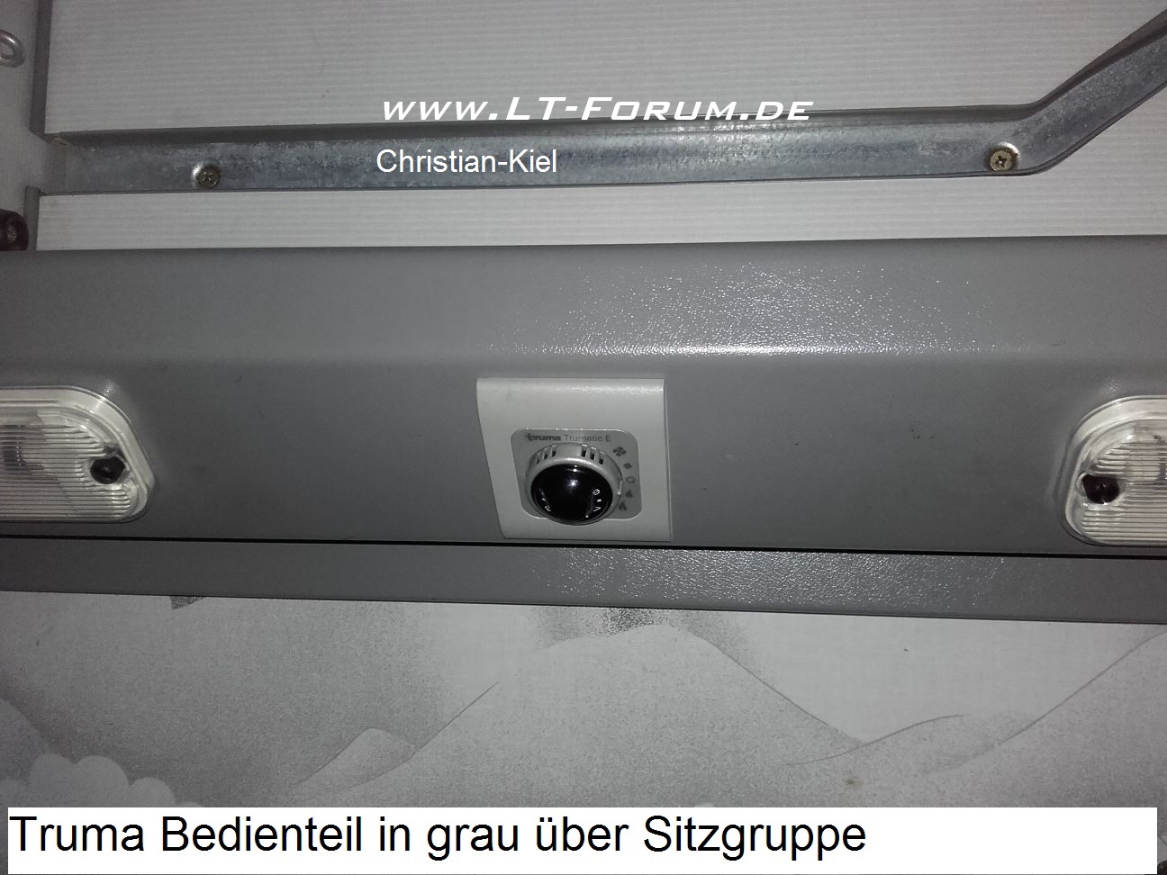 Das Bedienelement, habe ich zwischen die beiden Lampen gesetzt, über der Sitzgruppe. Es ist so einfach zu erreichen und optisch passt die graue Version gut zur Einrichtung des Florida. Der Metallkasten, welcher die Leuchtstofflampen beinhaltet, ist hohl und man kommt gut heran für den Einbau. Das Kabel verläuft vom Bedienelement nach vorn und dann hinter der Verkleidung hinunter in den Heizungskasten. Die originale Kabellänge ist ausreichend.
