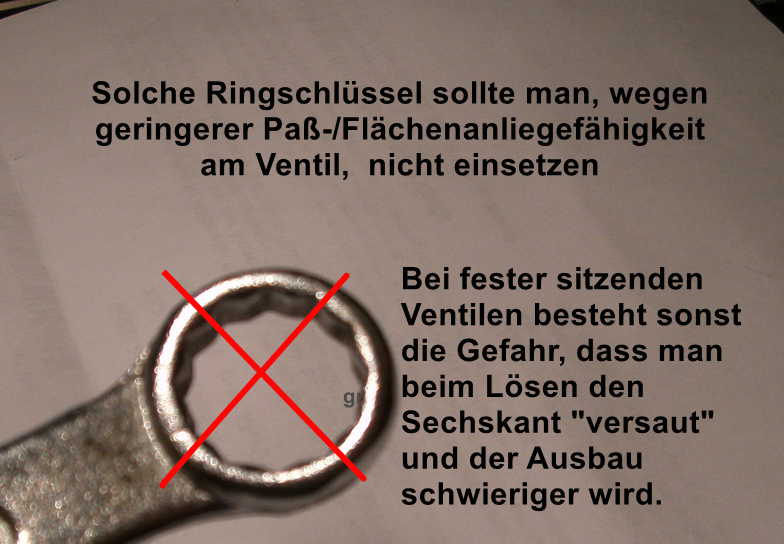 Entlüftungsangebote nur mit „Fahrradschlauchventilen o. ä.“