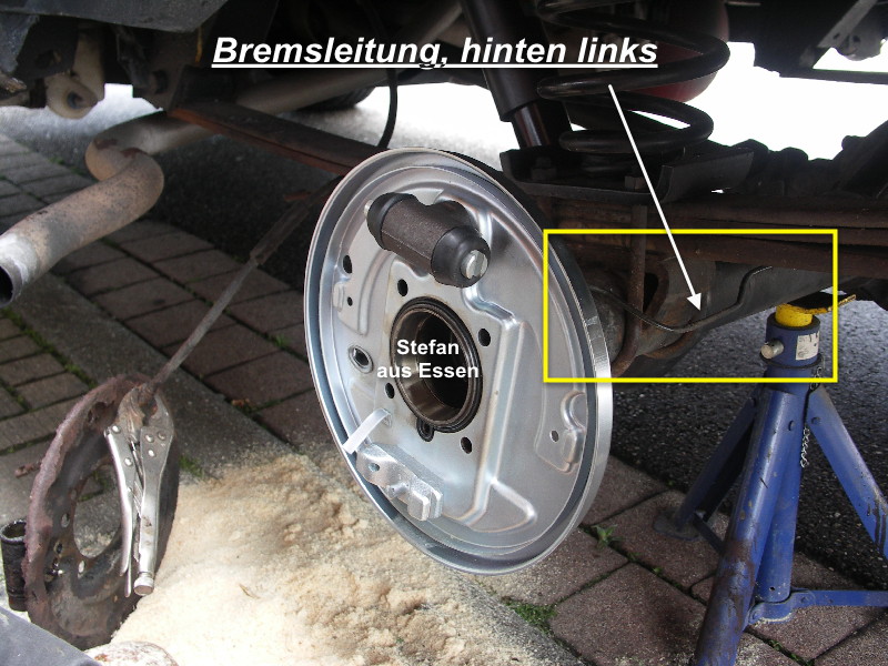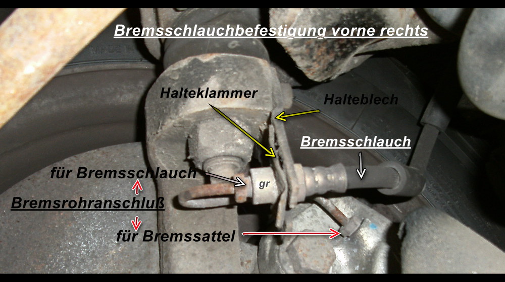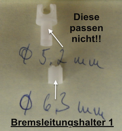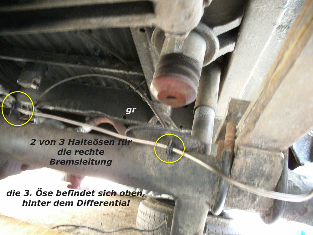-die rechte Leitung hat einen Abstandshalter aus Kunststoff am Halter für den Bremskraftregler.