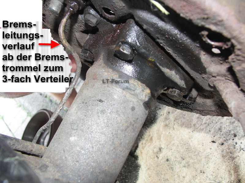 Bei den im LT unterschiedlichen, verbauten Hinterachsen ist unbedingt vor dieser Reparatur festzustellen, wo sich dieser Verteiler(T-Stück) befindet, weil dann die hier angegebenen Maße nicht stimmen.