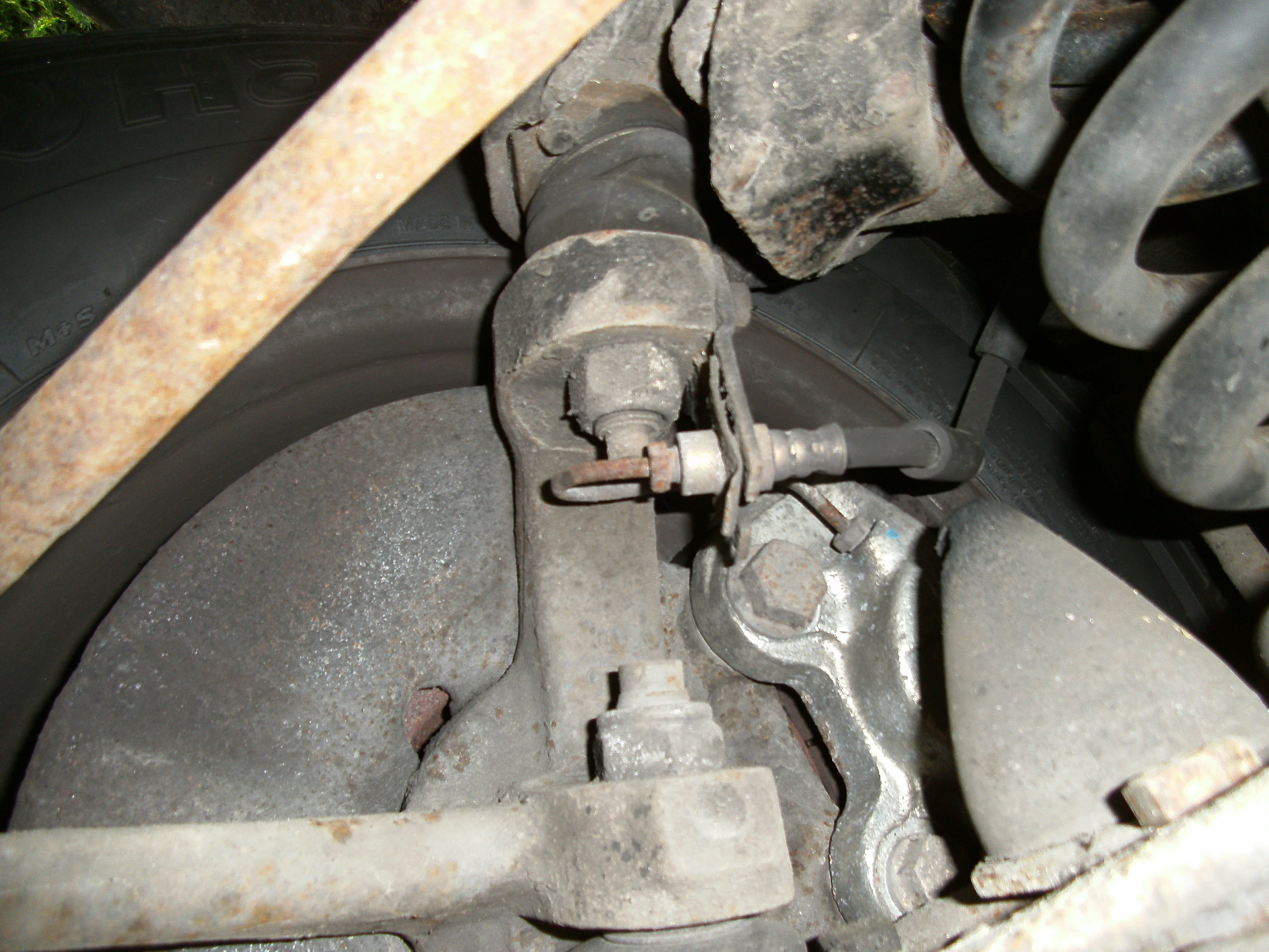 -die linke Leitung hat nur einen festen Abstandshalter, der in der Nähe der Stoßdämpferhalterung sitzt.