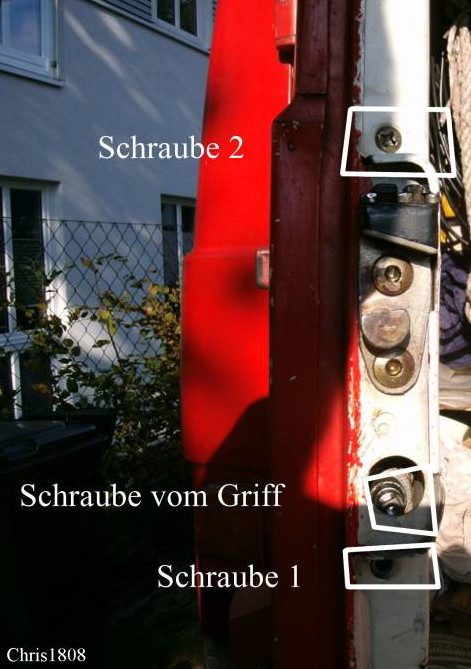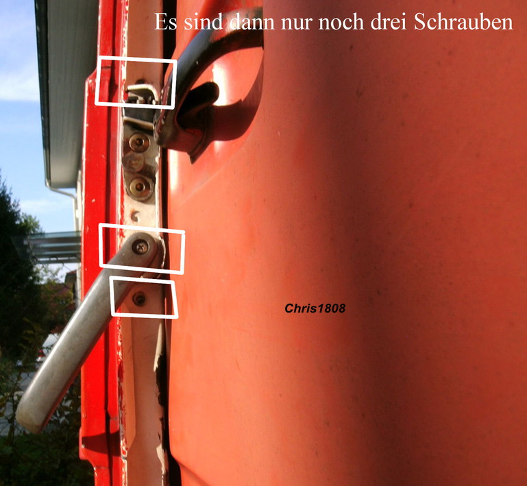 Die Schließstangen gehen oben und unten in Haltebleche, und sollten dort, soweit sichtbar , gut mit einem Rostlöser eingesprüht werden; nicht nur dort, sondern auch -um den Drehzapfen des Vierkant, und ganz wichtig, -auch die Türscharniere, weil die teilweise so festgesetzt sind, dass sie sich eher verbiegen, anstatt zu bewegen.