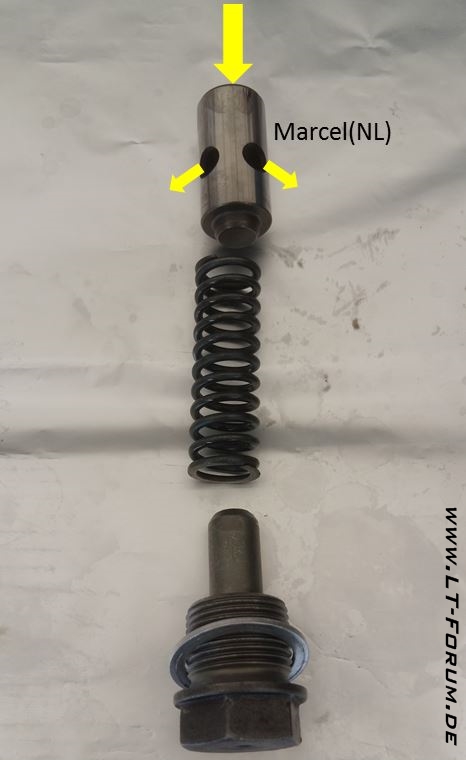 An der rechten Seite in Ab.1 sieht man das Überdruckventil, welches von der Unterseite in die Ölpumpe geschraubt wird.