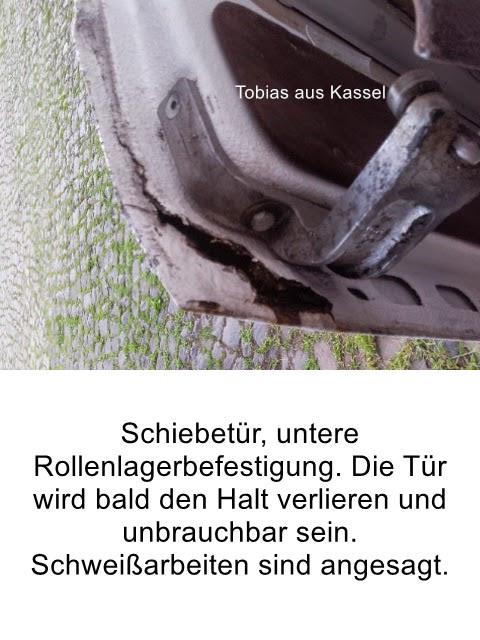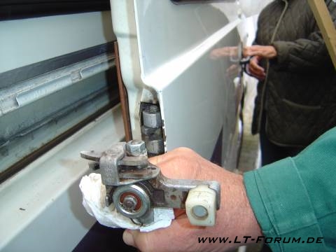 Die Schiebetür, das „lärmintensivste Teil am LT“ im Stillstand, bei ausgeschaltetem Motor, bedarf laufender Wartung, und es muss an den „richtigen“ Stellen geschmiert werden. Besonders anfällig sind hierzu „Teile- mäßig“, das Kunststoffteil im Rollenwagen und das kleine Lager im Rollenwagen.