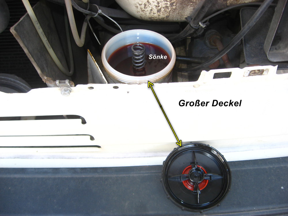 Bei Bedarf den O-Ring 38×2,5(N 90176301) im roten Deckel des Behälters auch tauschen.