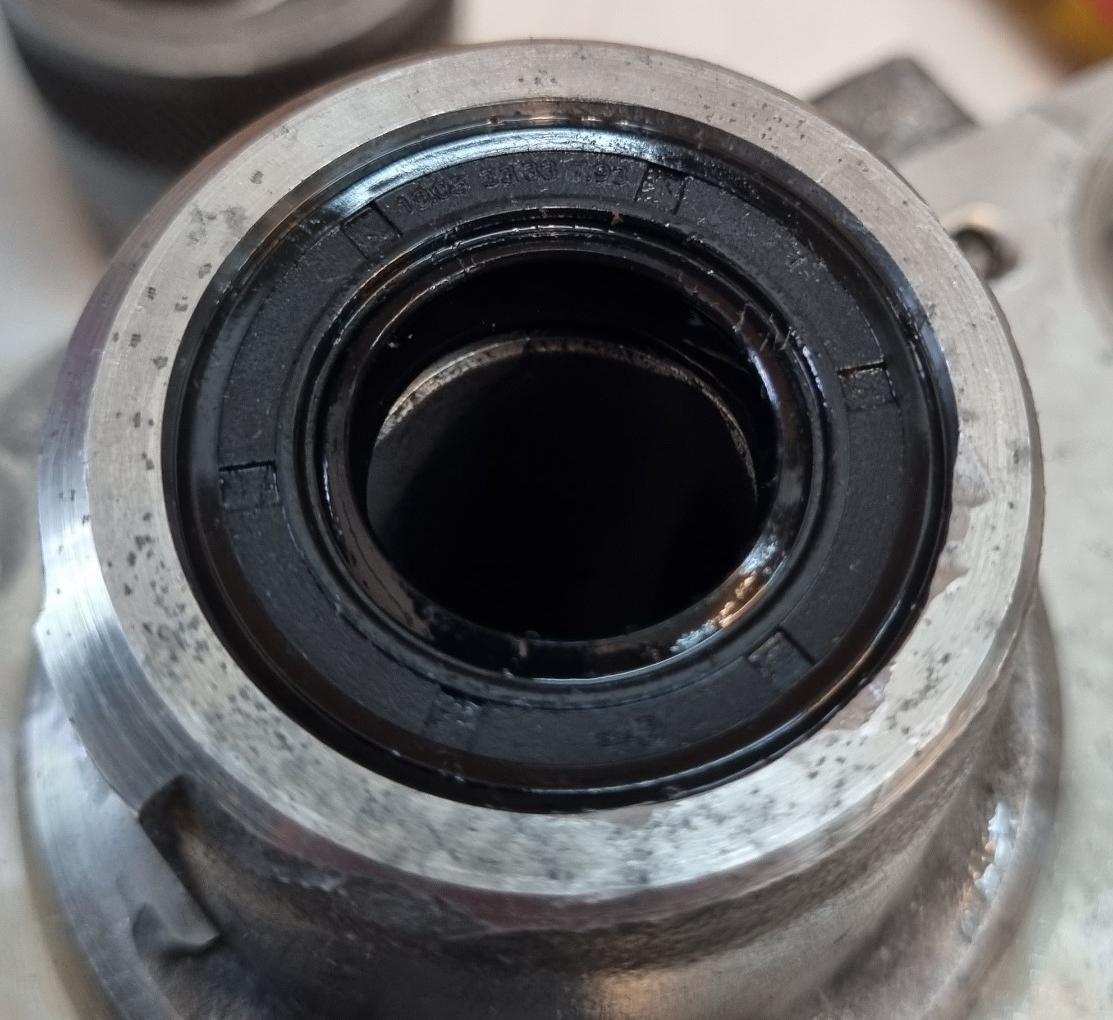 Wellendichtring in den Pumpenhals einpressen (einschlagen geht auch, vorsichtig – nicht verkanten).