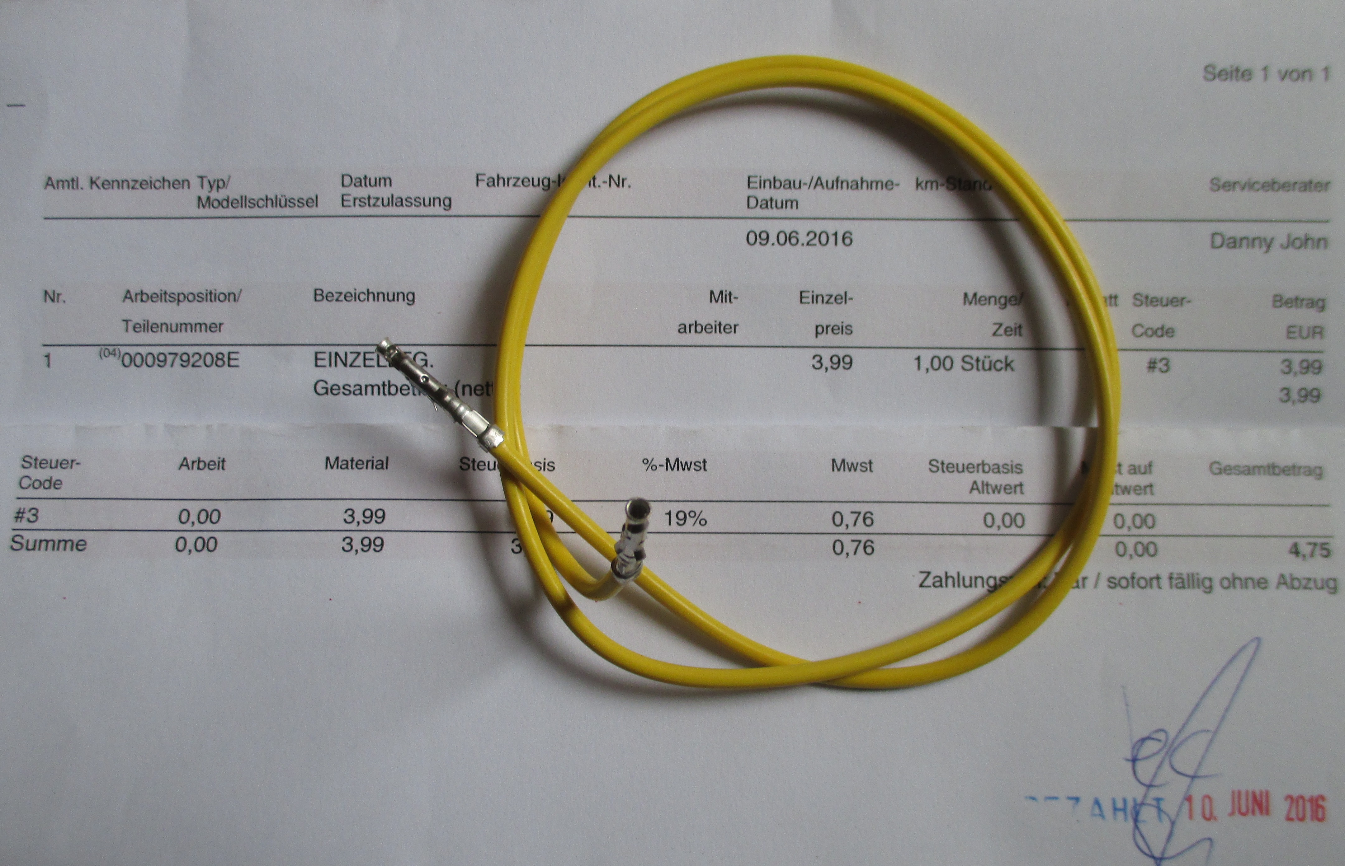 Als Beispiel hier ein Reparaturkabel von VW - 1,6mm Rundstecker mit 2,5mm² Leitung: