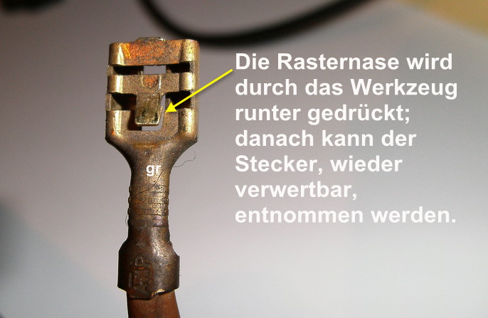 -Entriegelungswerkzeug, weil es die eingebauten Einzelstecker(Rund- und Flachstecker) entriegelt