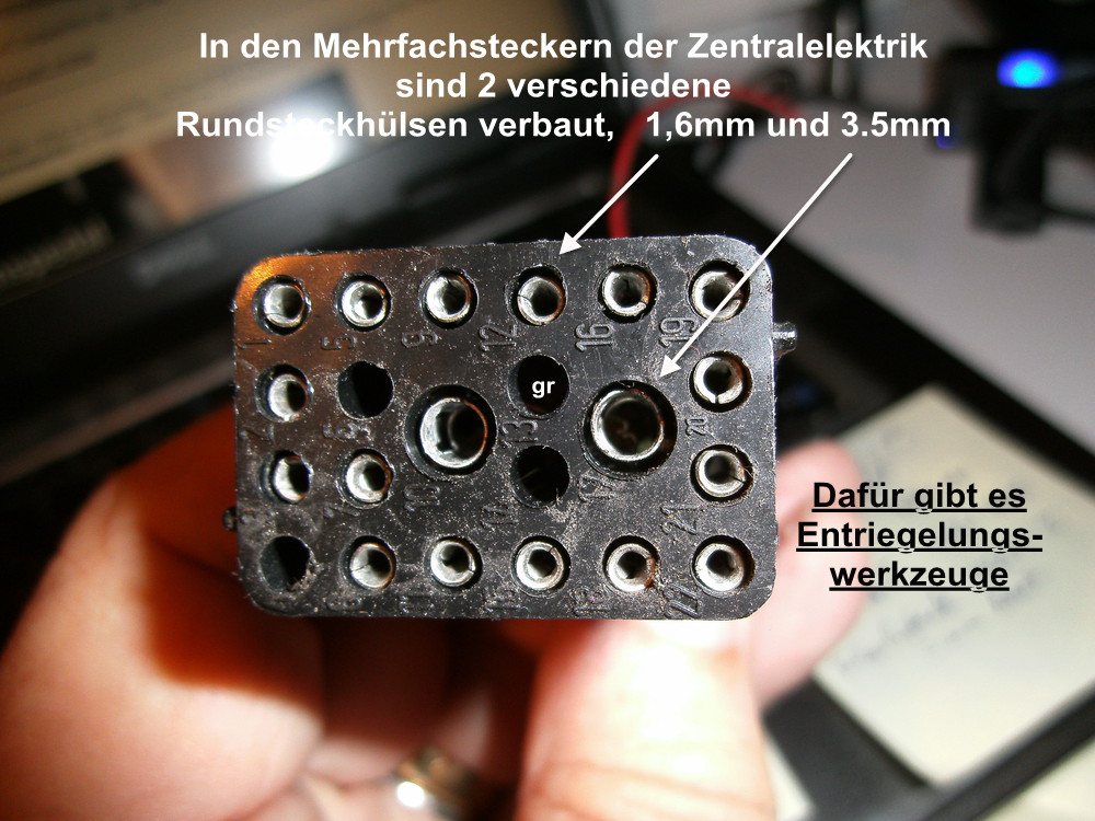 Eines der größten Probleme in/an der ZE sind die Steckverbinder mit den Rundhülsen und den Flachsteckern(Relaisaufnahmen).