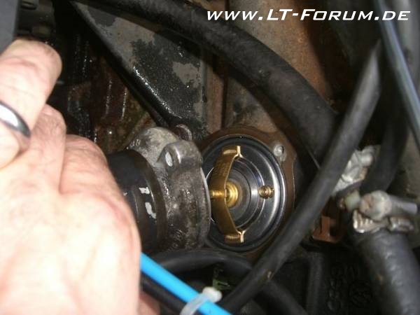 Wenn der Motor normal läuft und die Temperaturanzeige höher geht als NORMAL, kann man das Thermostat GANZ entfernen und mit neuem O-Ring (Dichtigkeit) weiterfahren.