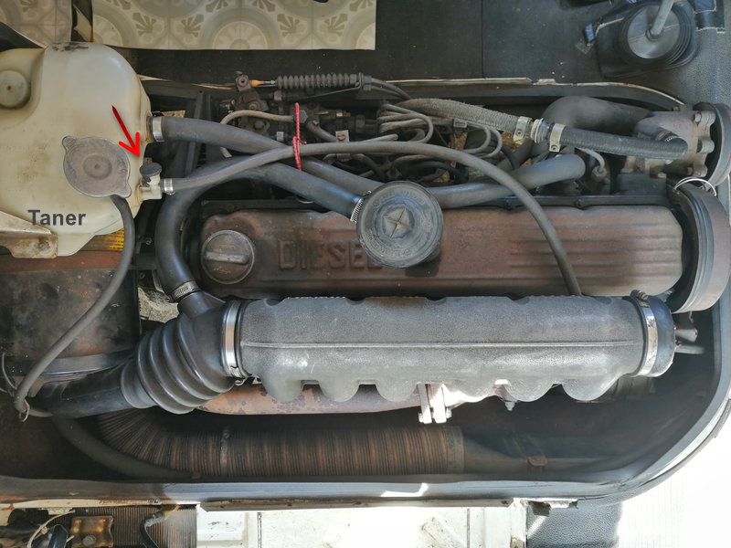 -Ausgleichsbehälter schließen und Motor ca 1 Minute mit erhöhter Leerlaufdrehzahl laufenlassen, damit sich der Kühlkreislauf entlüftet