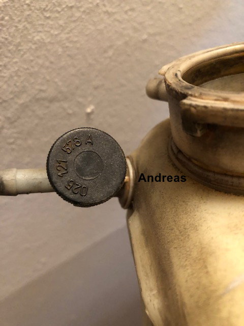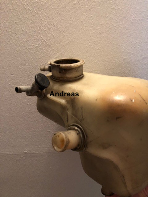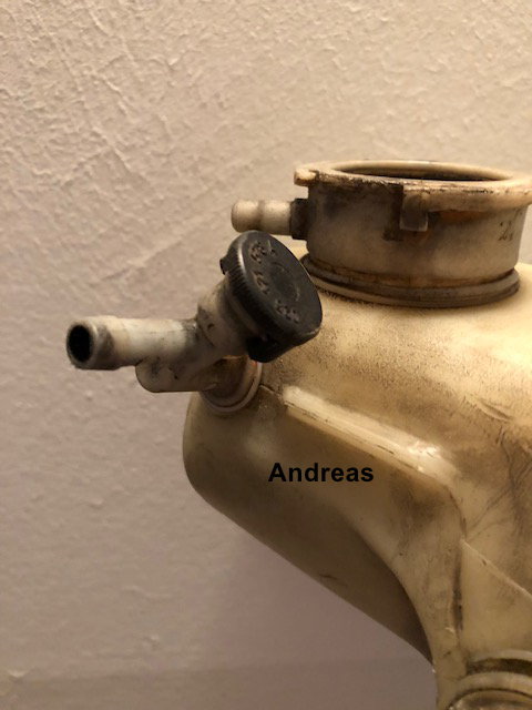 Im unteren Teil des Ausgleichbehälters gibt es einen Schlauchanschluss mit integriertem Gewinde, wird die darin befindliche Plasteschraube gelöst gibt es eine offene Verbindung zum Entlüften, oben.