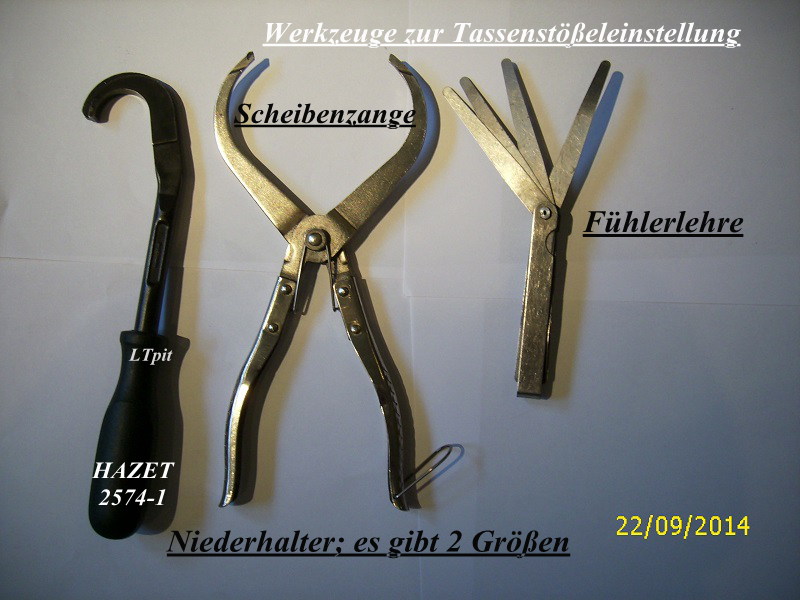 Die Einstellscheiben passen von allen VW/Audi-Motoren, so ab Mitte der 70-er bis Mitte der 80-er Baujahre. Danach setzten die Hydrostößel ein. Es gibt also jede Menge Einstellscheiben auf dem Schrottplatz. Aber: Der Niederhalter ist nicht der gleiche.
