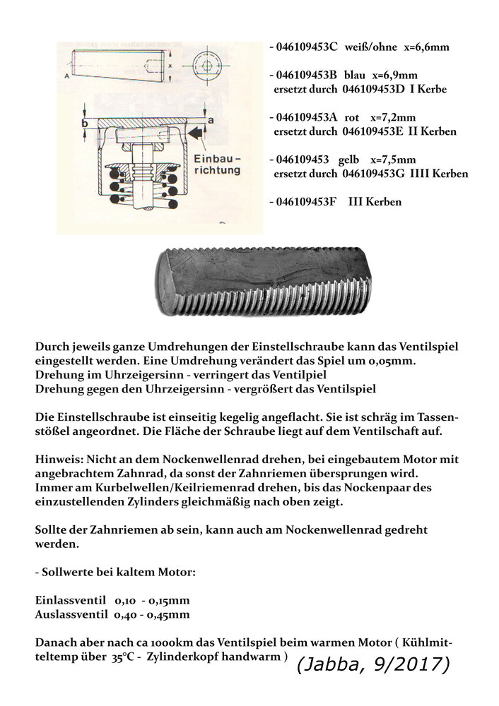 Bei Prüfung/ Einstellung sollte der Zylinderkopf „gut handwarm, ca. 35 Grad“ sein.
