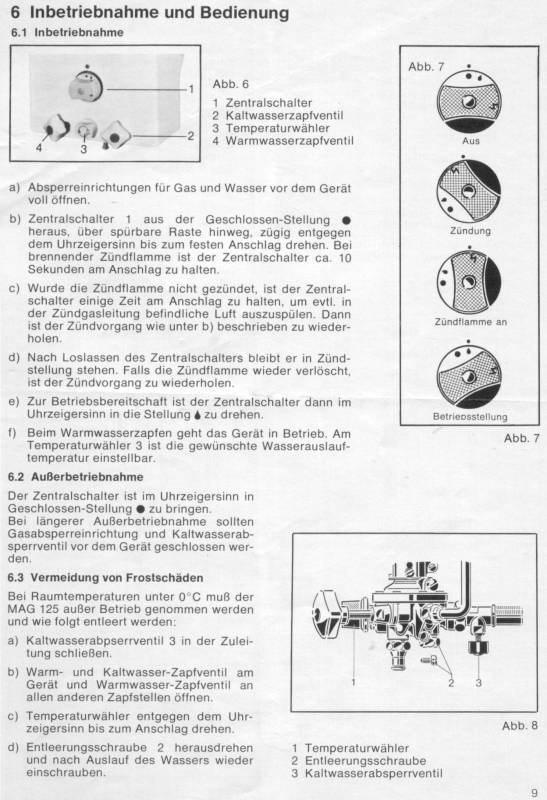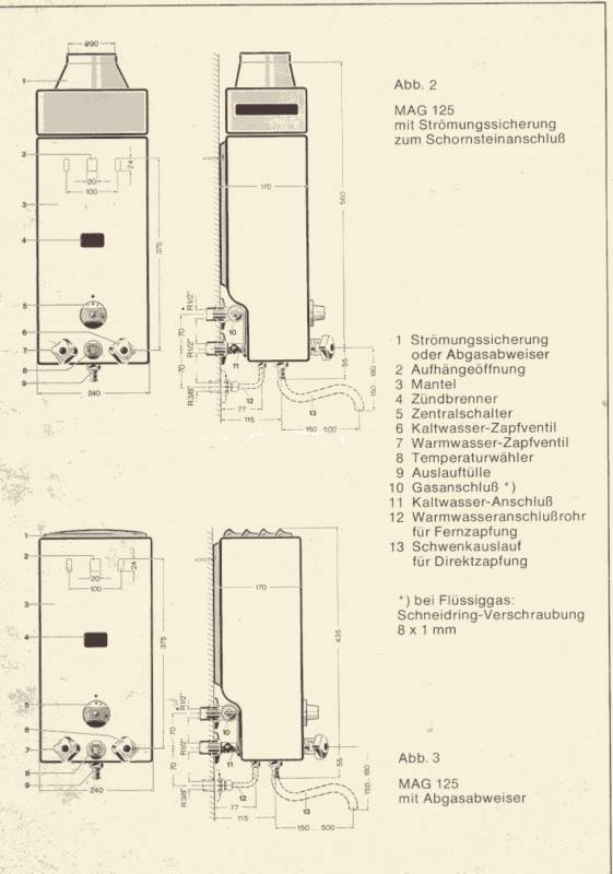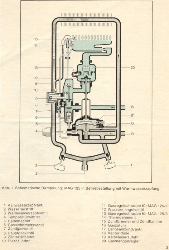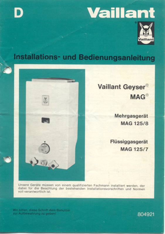 Durchlauferhitzer , Vaillant MAG 125/7, TZ (Gerätebezeichnung), PB (Propan), Beschreibung - Bedienungsanleitung, Aus- und Einbau, Reparaturhinweise, mobile Geräte