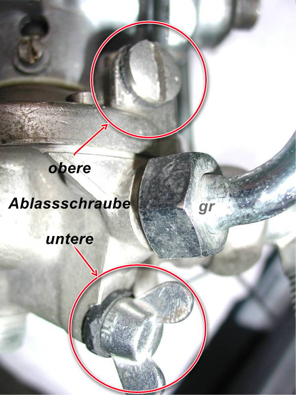 -LANGSAMZÜNDVENTIL blockiert ; sitzt hinter der GROßEN SCHLITZSCHRAUBE über der FÜGELSCHRAUBE