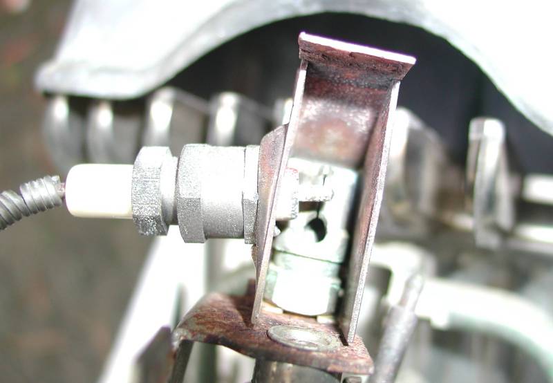 Links unten sieht man das Thermoelement und dessen Ableitung zum Haltemagnetventil.