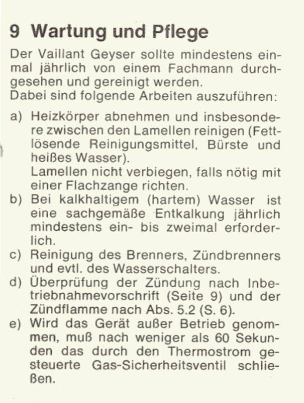 Reparaturhinweise / Checkliste für Vaillant Gas – Durchlauferhitzer