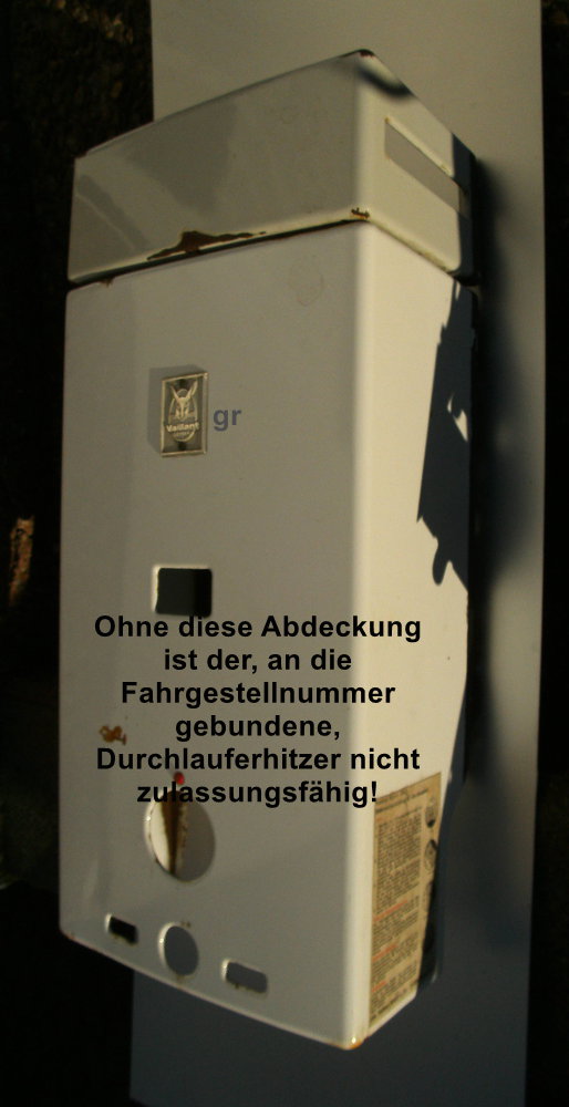 Der Durchlauferhitzer hat keine KBA-Nr. und ist also nicht für den Betrieb in KFZ zugelassen. Man schreibt ja auch nur, dass man ihn überall benutzen kann…und die Bilder sind nur draussen.