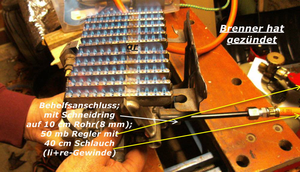 - im Hintergrund ist der Hauptbrenner zu sehen