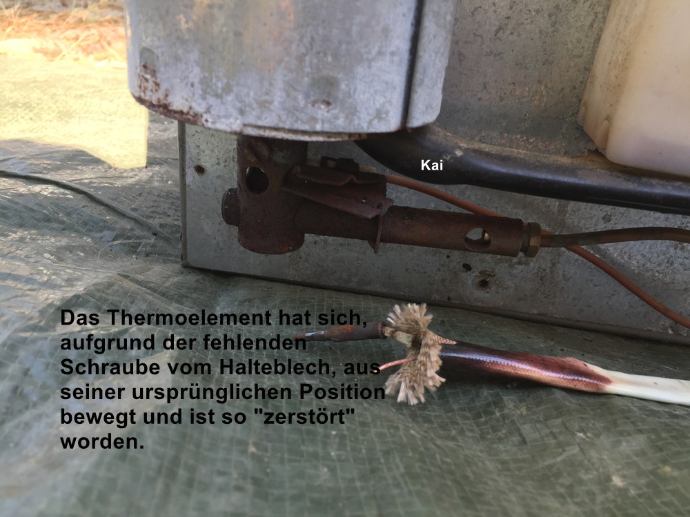 - geht die Flamme nach dem Zünden gleich wieder aus? ; Abhilfe: Austausch der Thermosicherung