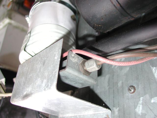 -Daneben sieht man am Abgasrohr weiter oben den Haltedraht für die „Abgas-Heizungsspirale. OHNE deren AUSBAU kann man das Abgasrohr NICHT reinigen.