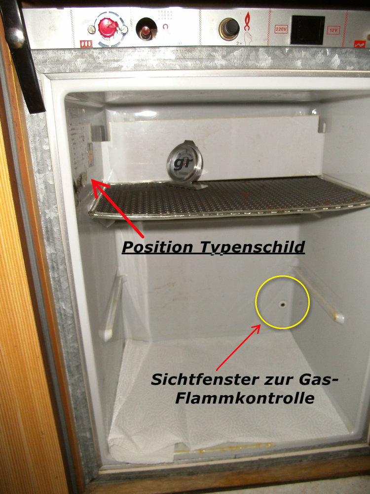Um welchen Kühlschrank es sich handelt, ist immer auf einer „Alu-Klebe-Folie“ im Detail im Kühlschrankinneren(Seitenteil) zu lesen(hoffentlich!).