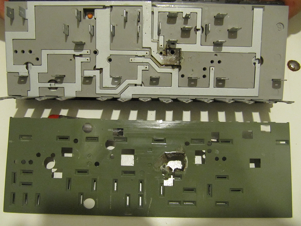 war der Übergangswiderstand der Pins, welche original an die Leiterbahnen angenietet war.