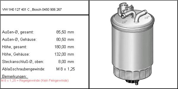 | - | - | - | - | Bosch | 0 450 906 267 | Filter mit Schlauchstutzen mit Vorwärmung | 10/88» |