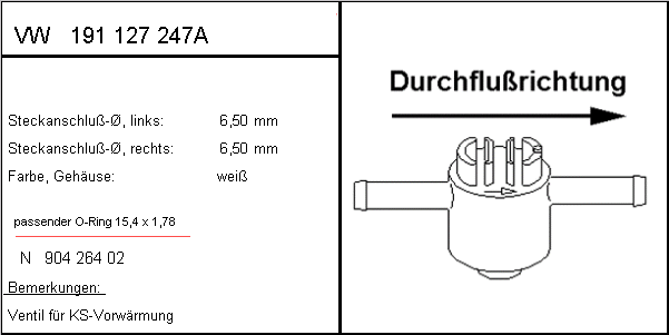 VW Ventil Nr. 191 127 247 A passender O-Ring 15,4×1,78 VW Nr. N 904 264 02 (Febi 39732 , SWAG 30 93 9732)
