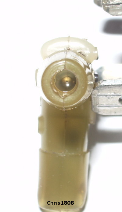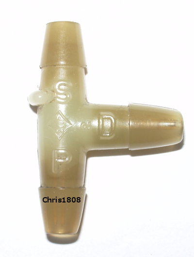 Links, das T-Stück: P=Pumpe D=Düsen S=Behälter Bei „S“ und „D“ sind wunderbare Kugelventile drin, trete ich auf die Pumpe, geht „S“ zu und „D“ auf, lasse ich los geht es umgekehrt. Die Düsen werden abgeschaltet und der Weg zum Behälter öffnet, somit geht das Wasser in den Pumpenbalg. Der Abgang „D“ (bei mir über noch ein Rückschlagventil, ist zwar Quatsch) zu einem weiteren T-Stück (ohne Ventile) zu den Düsen.