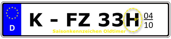 Somit begrenzen sich die Möglichkeiten in einigen Zulassungsbezirken bei denen bereits 3 Zeichen vor dem Strich „verloren“ gehen dann abzgl „H“ und „S=Saisonkennung“ auf verbleibende 3 Stellen, also z.B. ein WOB - LT28 H „S“ geht dann wohl leider nicht mehr.